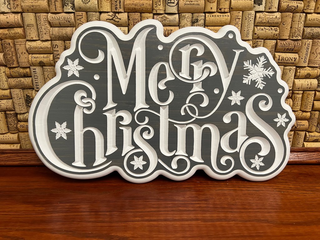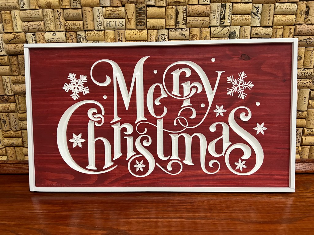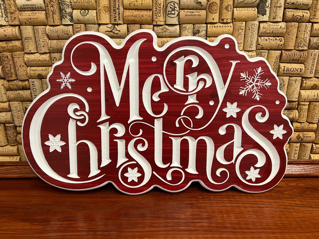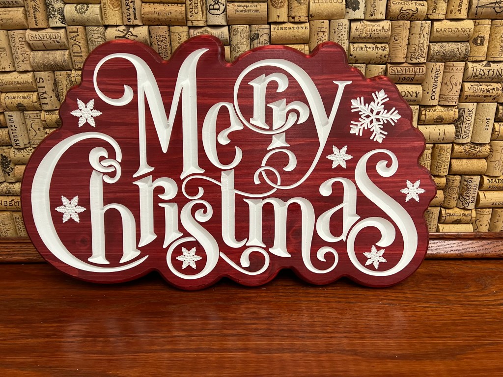 Christmas Signs $50 -These signs are made out of Pine a full one inch thick. Merry Christmas signs are 12 inches tall and 21 inches wide. The Snow Family sign is 12 inches tall and 18 inches wide.