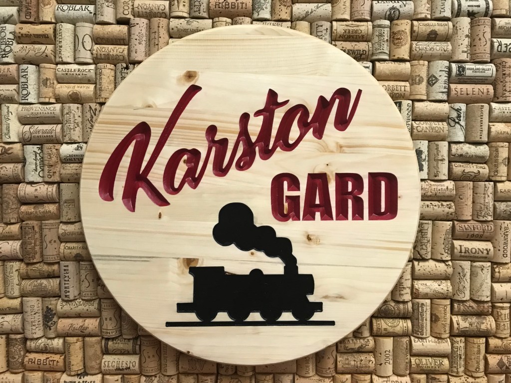 I also make and sell custom name and activity signs. Some use these signs for a child’s bedroom decoration. Others display these proudly to highlight the school activities their middle or high school aged child participates in. These signs will include your child’s name and two “line art” graphic images that you choose and provide. You can select colors that match your child’s bedroom or use your child’s school colors. Custom signs are $65 each for a 15 inch diameter one inch thick sign.